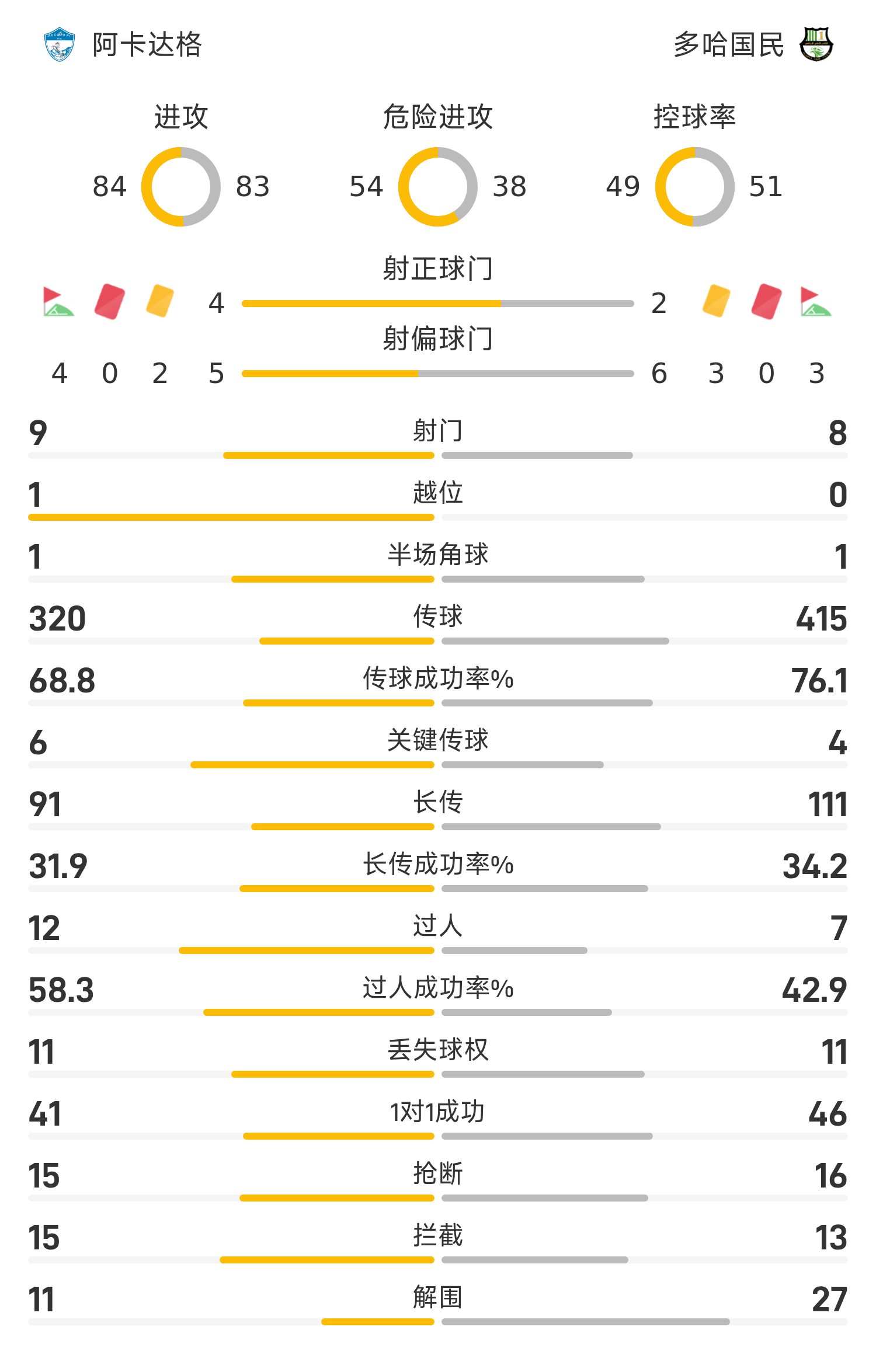 26’米特洛维奇顶球顶进自家球门口死角,阿卡达格暂1-1多哈国民