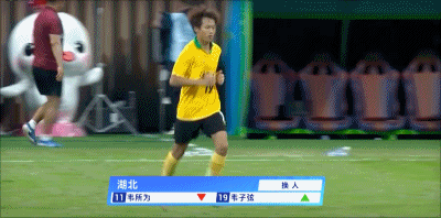 46’下半场开端之前,因伤无法坚持的韦所为被韦子弦换下