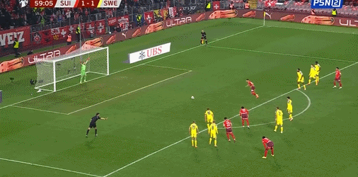 63’差之毫厘!瑞士边线球主罚到三秒区内,连续形成威胁攻势