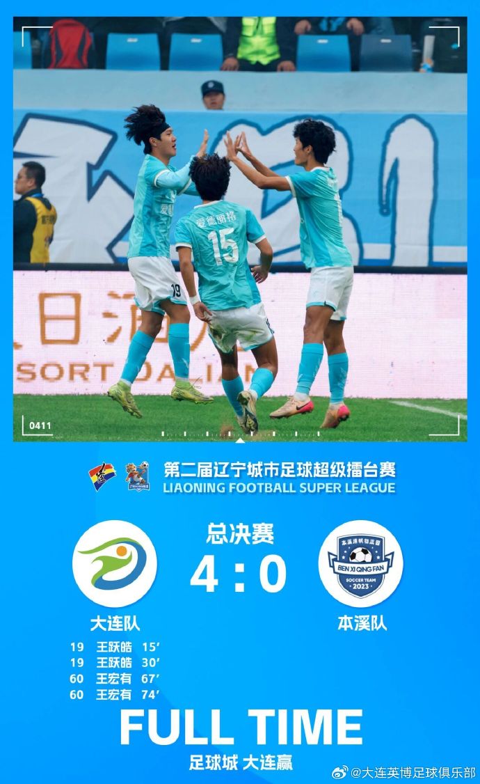 最终,大连队在主队场4-0战胜本溪队,取得2025第二届辽宁城市足球超级擂台赛总总决赛冠军!