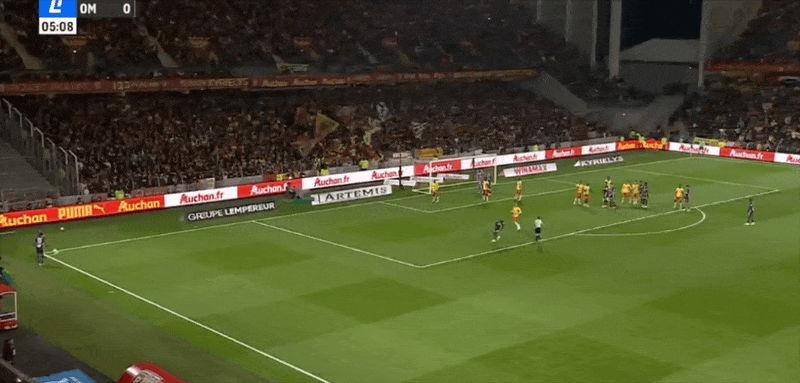 6’马赛边线球攻击,格林伍德门前抢射踢空随后被吹越位在先