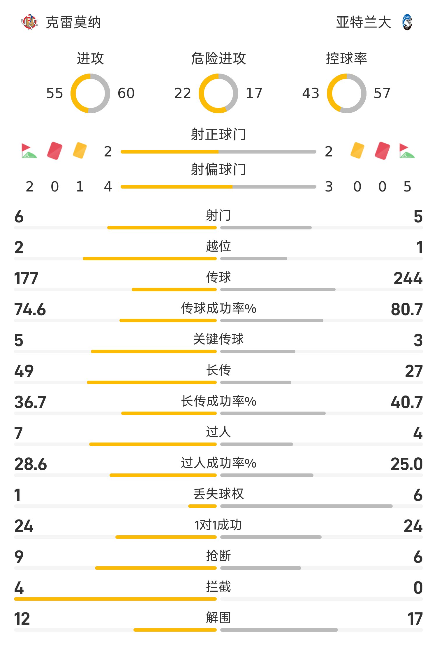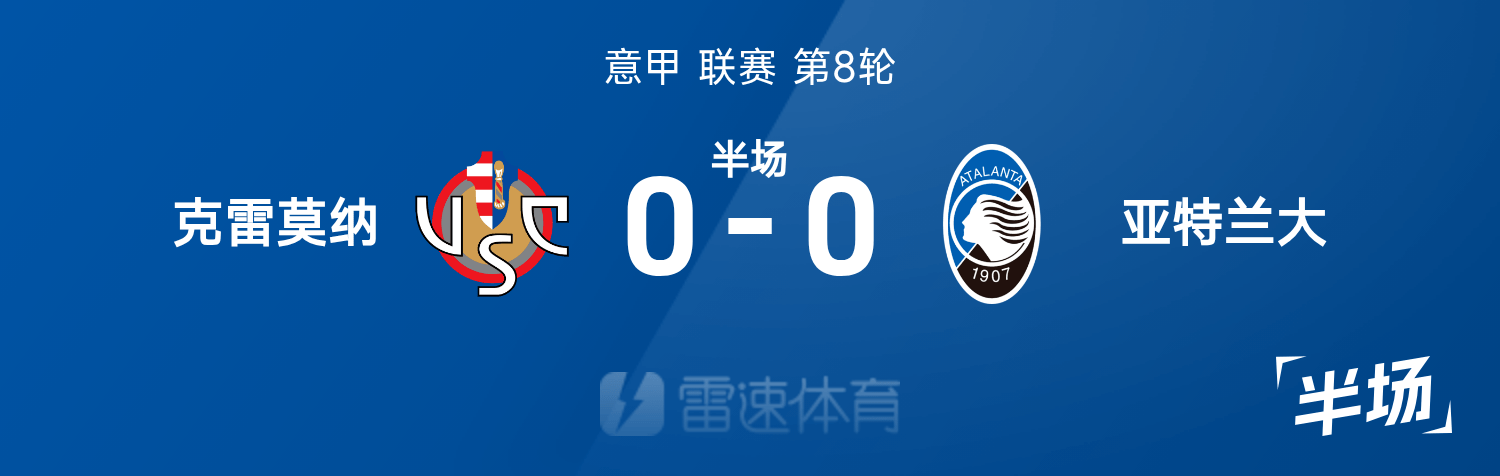 意甲半场:德凯特拉雷造险,克雷莫纳0-0亚特兰大