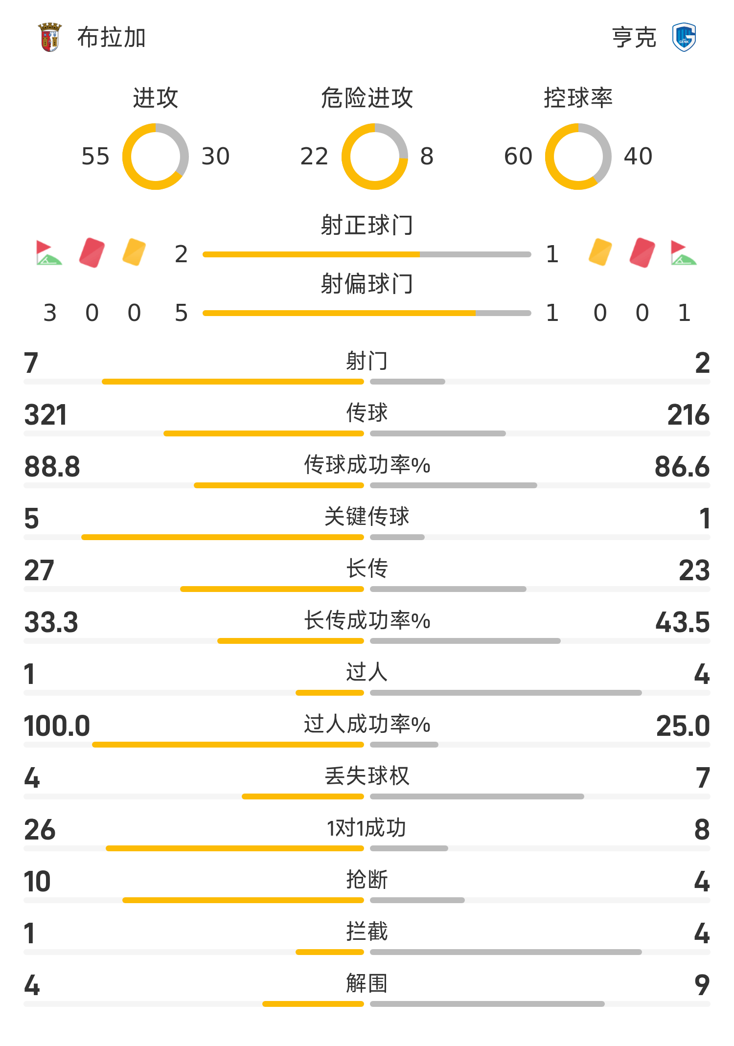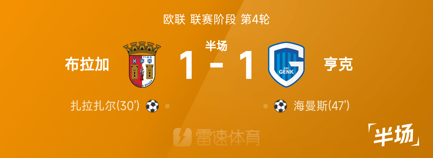 6686体育官网11月07日讯 25/26赛季欧联联赛事阶段第4轮,布拉加迎战亨克。半场战罢,双方赛果分暂为布拉加1-1亨克,扎拉扎尔、海曼斯破门建功。