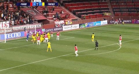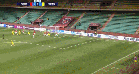 87’赵尚赫跟进射门破门,浦项铁人扳平赛果分,暂1-1淡滨尼流浪者