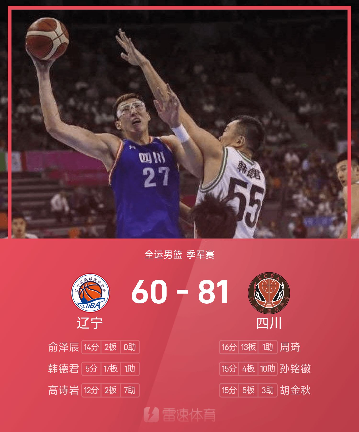 6686体育官网11月12日讯 全运男篮季军赛,四川对阵辽宁。