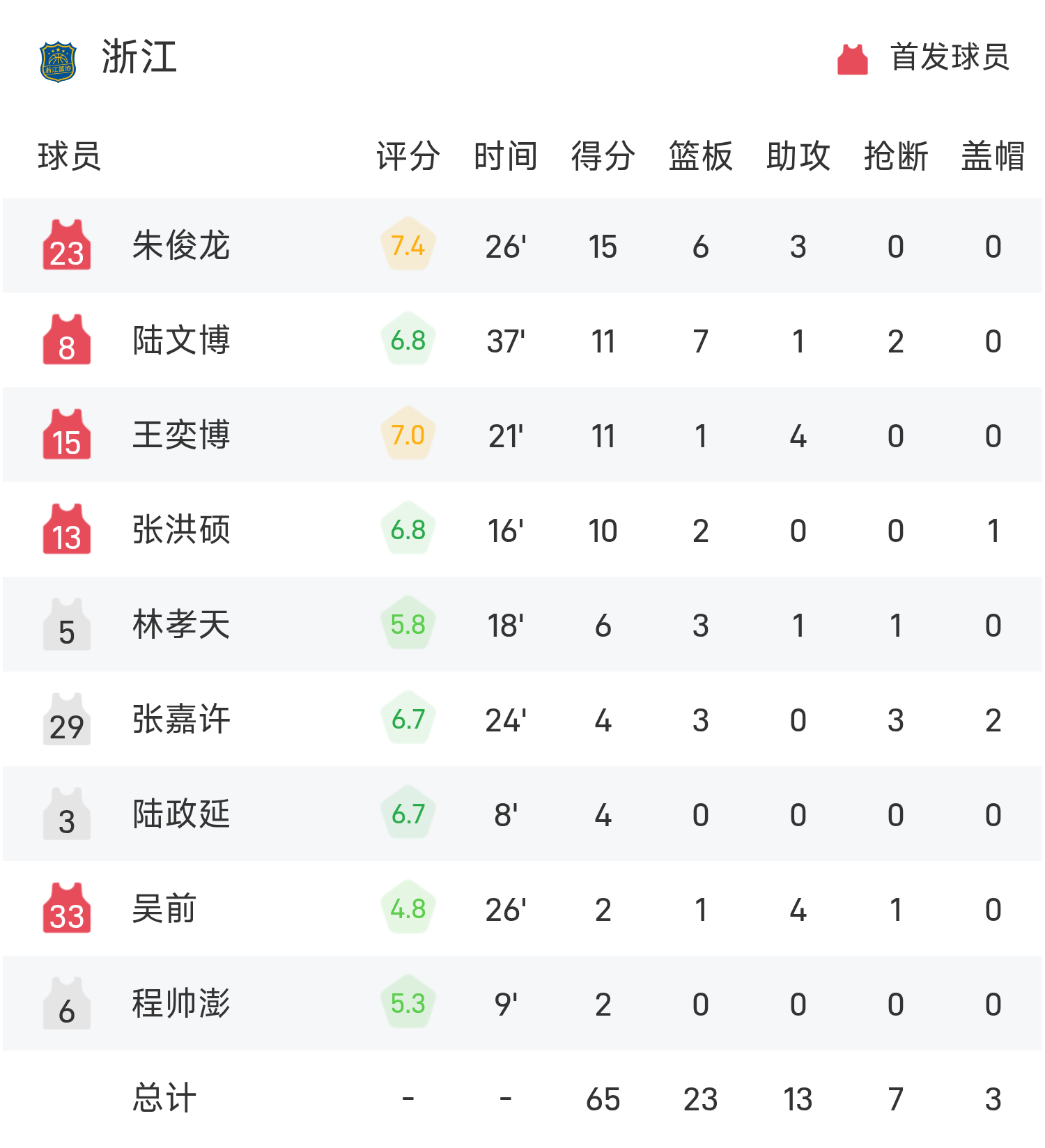 双方全场战罢,浙江65-101不敌广东。
