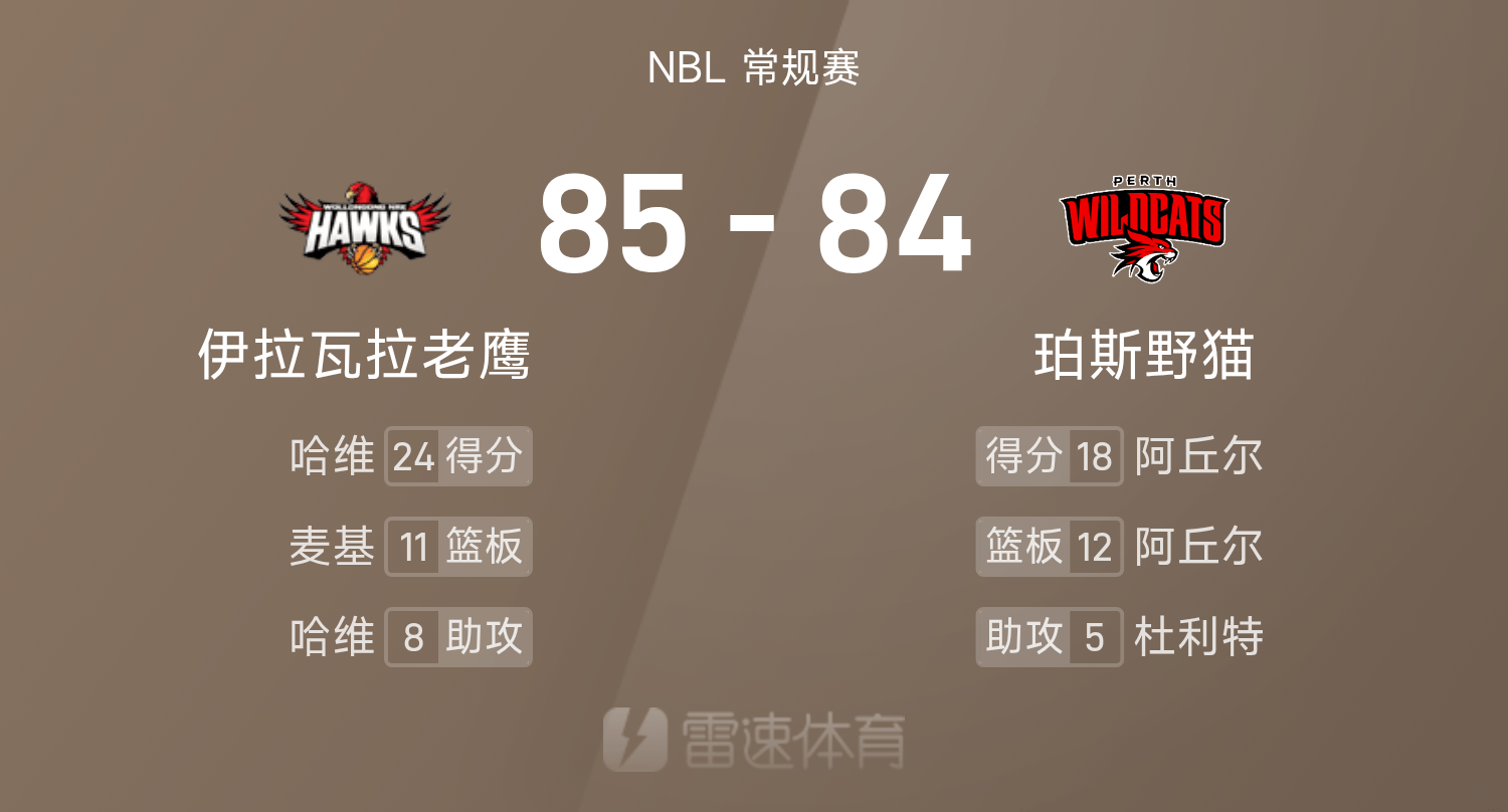NBL战报:哈维24分8助,麦基罚篮最后一投,老鹰85-84险胜野猫