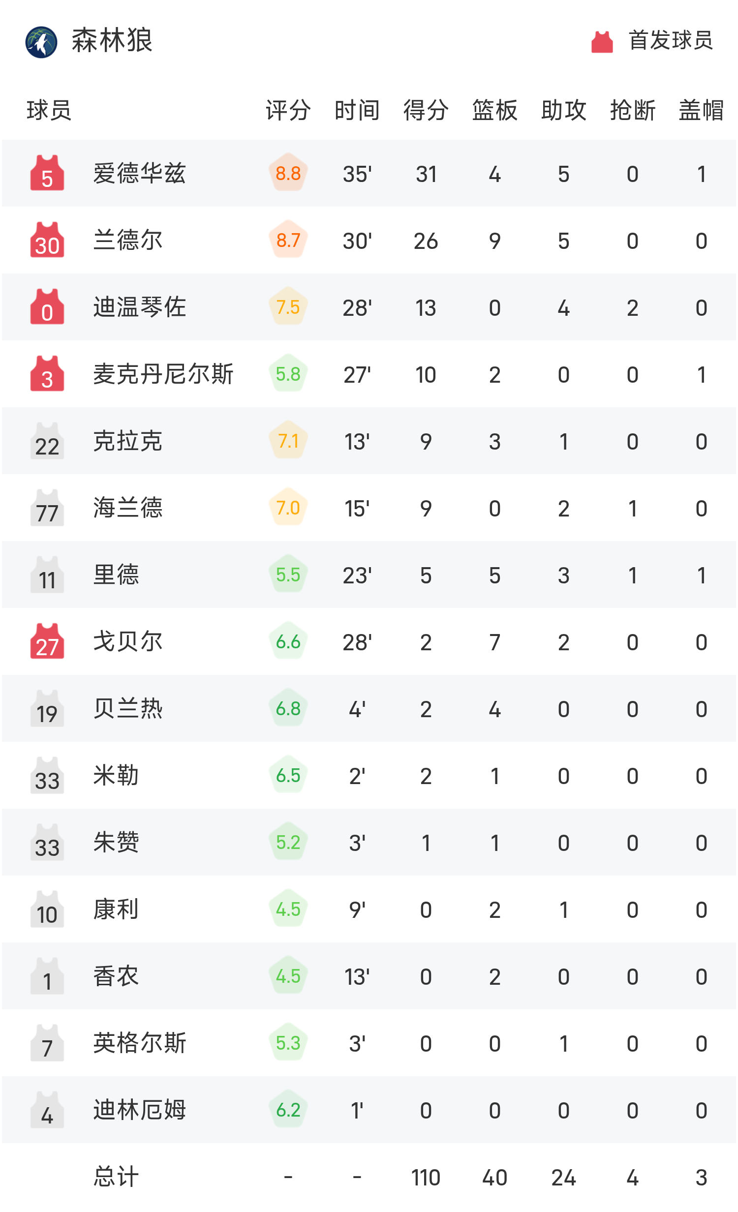 球员数据 查看更多