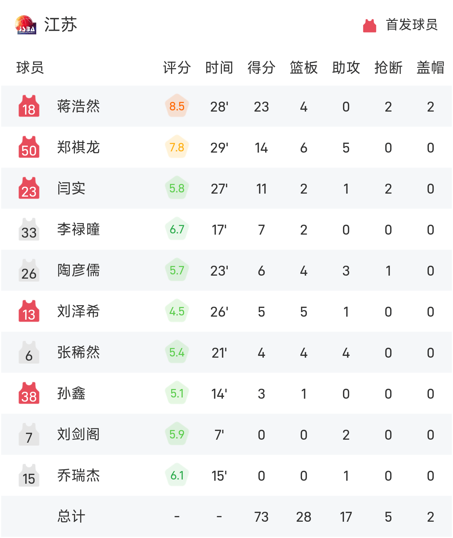 6686体育官网11月06日讯 全运男篮 分组赛,江苏对阵广东。双方全场战罢,江苏73-96不敌广东。徐杰砍下全场最高的29分3板5助,率领广东胜利取胜,江苏半场保持领跑位但第三节仅得9分。