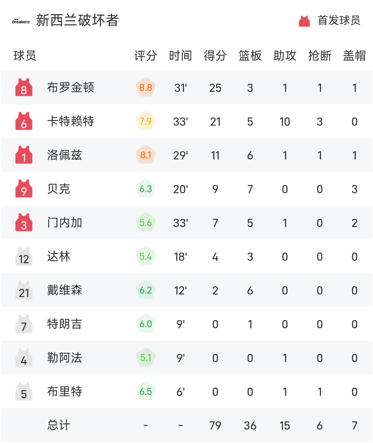 6686体育官网11月06日讯 25/26赛季NBL 常规赛,新西兰毁坏者对阵阿德莱德36人。双方全场战罢,新西兰毁坏者79-83不敌阿德莱德36人。科顿得到23分1板5助率队取胜,布罗金顿空砍全场最高的25分3板1助。