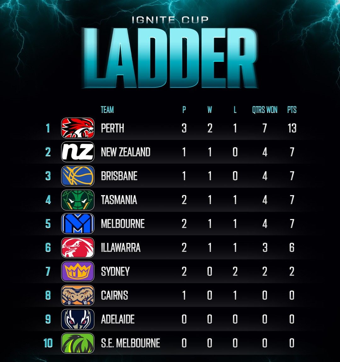 Ignite Cup采用世界首创的全新天梯积分系统,从而竞赛会更加刺激。每场获胜的球队将获得3个积分,每赢得一节的球队也会获得1个积分。如果两队单节的得分相同,则每队获得0.5分。”